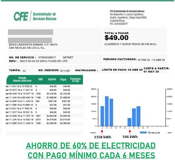 Consumo promedio antes de paneles: 675 kWh mensuales